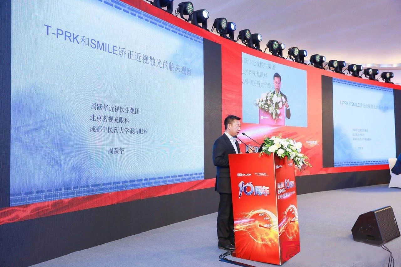 国内较早开展近视激光手术的茗视光眼科首席专家周跃华教授应邀出席论坛,并做了《TransPRK与SMILE矫正近视的临床研究》的课题报告。